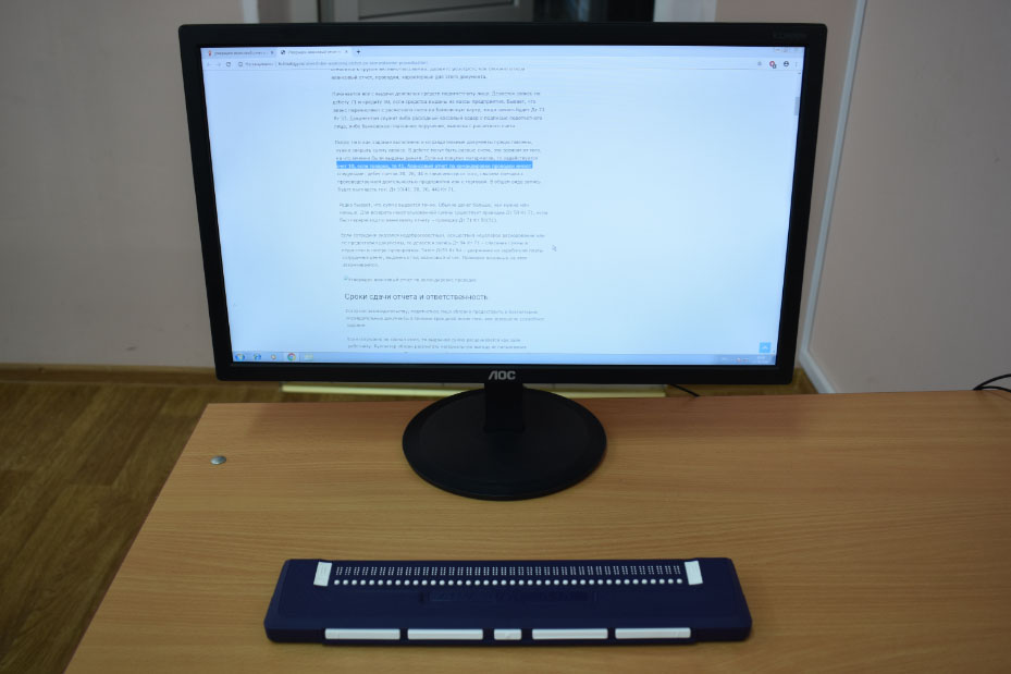 Дисплей Брайля— это основное средство доступа к персональному компьютеру для незрячих и слепоглухих пользователей. Дисплей оснащен сорококлеточнойбрайлевской строкой и клавишами для брайлевского ввода. Ультракомпактный дизайн устройства позволяет использовать его с максимальным комфортом как на рабочем месте, так и в условиях высокого ритма жизни большого города.