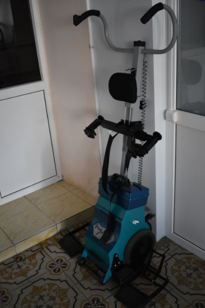 - Тренажер для разработки верхних и нижних конечностей. Тренажер предназначен для разработки ног и рук. Ручки, соединенные через блочки, предназначены для разработки плечевых и локтевых суставов, повышению проводимости и кровотока. Педали предполагают возможность совершения маятниковых движений вперед и назад от пациента. Конструкция тренажера дает возможность соединить педали и ручки таким образом, чтобы держась за ручки было возможно поднимать ногу и наоборот, двигая ногой возможно двигать руку с ручкой. Занятия возможны в положении сидя и стоя.
